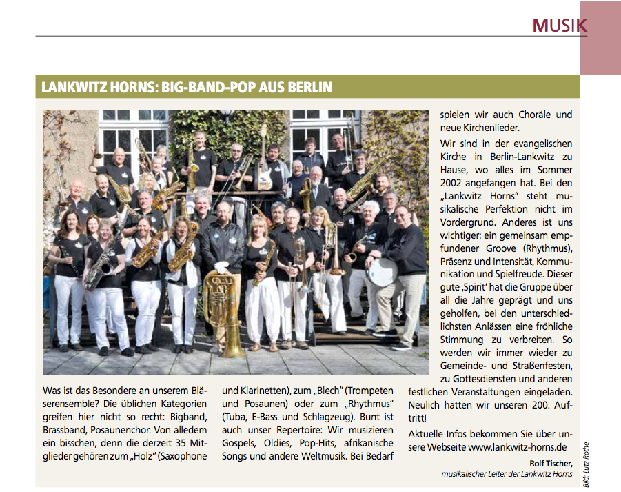 Big-Band-Pop aus Berlin 14. August 2018 by Christian Seel Kirchenfenster, Nr. 49 Jahrgang 9 – August / September 2018
