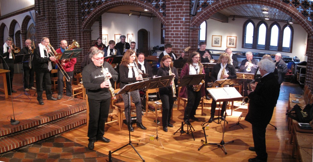 Ja, das war eher das Gegenprogramm vom stillen Harfen-Duett. In dem ehrwürdigen Gemäuer des Hörsaals der Kaiserin-Friedrich-Stiftung in Berlin Mitte haben wir mit 26 Horns und einem Gasthorn am Schlagzeug mächtig Stimmung gemacht und waren wie immer gut zu hören.